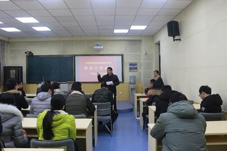 会上,沈会焘老师感谢全体研究生对校研究生工作办公室工作的支持,并就同学们本学期的表现作了认真总结,充分肯定了同学们一个学期以来所取得的成绩。按照学校的通知要求,沈老师要求大家积极配合,全面做好期末离校安全工作,留校同学要写出申请并签署假期安全协议,并确保每位同学安全离校。沈老师还重点强调了寒假期间的安全注意事项,从防火防盗、防诈骗、防传销、防人身伤害、防范自然灾害,以及假期往返途中的交通、饮食及假期人身财产安全等方面进行了全面的讲解教育,有效的增强了大家的安全防范意识,提高了大家人身和财产安全的防范能力。
