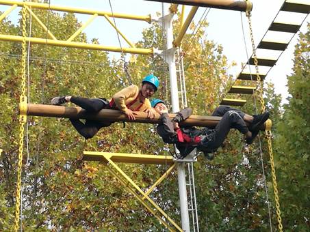 本次拓展运动会,全校共有22支代表队,我校联合培养研究生代表队首次参赛。在为期两天的比赛中,我校全体研究生全情投入,先后参加了旋风跑2.0,旗语,挑战150,先锋工程,巨人梯,树上攀岩,翻转乾坤,求生战场8个大项,其中树上攀岩为我校“网红课”,先锋工程和求生战场为“保密”项目,赛前公布内容,增加趣味性,“求生战场”更深获同学们的喜爱。
