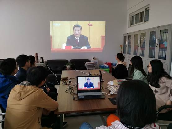 4月30日上午10时30分,纪念五四运动100周年大会在人民大会堂隆重举行。中共中央总书记、国家主席、中央军委主席习近平出席了大会并发表了重要讲话。学科建设办公室组织在校的联培研究生在办公楼531办公室收看了此次直播盛况。