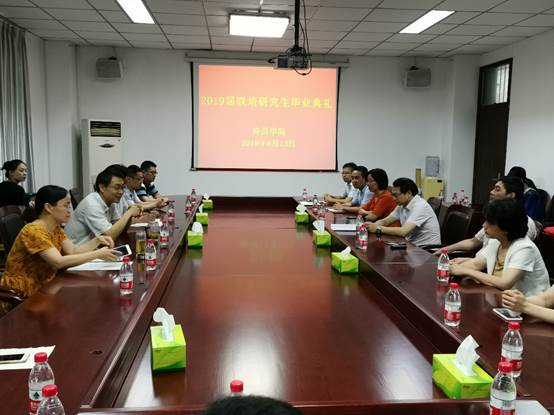 6月13日下午,我校2019届联合培养硕士研究生毕业典礼在办公楼第一会议室举行。副院长郑直教授出席典礼,学科建设办公室、联合培养的导师以及我校与郑州大学、河南大学、华北水利水电大学、河南科技大学、河南工业大学、湖南工业大学、中原工学院和武汉体育学院等联合培养的研究生共同参加了典礼。毕业典礼由学科办主任田萍教授主持。