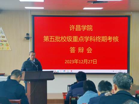 12月27日上午,我校第五批校级重点学科终期考核答辩交流会在食品与药学院学术报告厅举行,副校长杜根远出席答辩会。19个第五批校级重点学科依托二级学院院长、学科(学术)带头人、学科助理,以及发展规划处、教务处、科研处、人事处等职能部门负责人参加会议。交流会由学科建设办公室主任田萍主持。