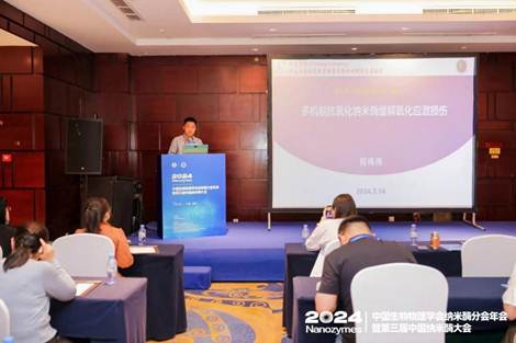 来自全国各地的专家学者及师生代表围绕纳米酶现阶段发展中的理论研究和应用扩展等研究方向展开了热烈的交流。在纳米酶交叉研究与应用分会场,何伟伟教授担任会议主持并以《多机制抗氧化纳米酶与氧化应激类疾病治疗效应》为题做了邀请报告。何伟伟教师以团队开发的纳米酶材料为主线,深入的讨论了纳米酶的多机制效应,以及在氧化应激类疾病治疗方面的多机制调控与机理研究,在会场上引起了广泛的关注与热议。